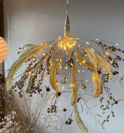 Unsere grosse Leidenschaft ist das Entdecken floraler Materialien in der Natur. In der Kombination mit Draht, Lichterketten und Kerzen entstehen traumhafte Einzelstücke. Diese überzeugen mit ihrer Leichtigkeit und Harmonie.