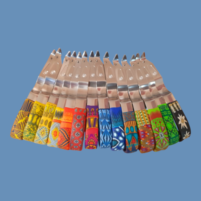 Mich fasziniert vor allem das Spielen mit Farben und Formen. Die Muster stelle ich alle selber her und es macht mir Freude mit meinen Bestecken Farbe in den Alltag zu bringen.