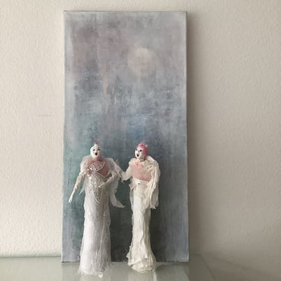 Meine Materialien: handgefärbte Seide, Spitzen, Wolle, Textilien