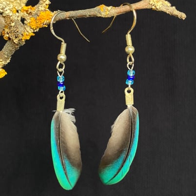 Aus den gemauserten (nicht gerupften) Federn der Vögel aus der Volière im Vögelipark (Lindengutpark) in Winterthur fertige ich Schmuck (v.a. Ohrringe), aber auch Traumfänger.