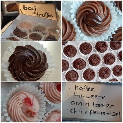 Öppis bsunders guets war schon das Logo unserer Eltern. Im schoggi-atelier kreieren wir baci di truffes und griottes, das heisst von der Weichsel am Baum bis zur Praline. Sie sind am besten mit geschlossenen Augen zu geniessen.